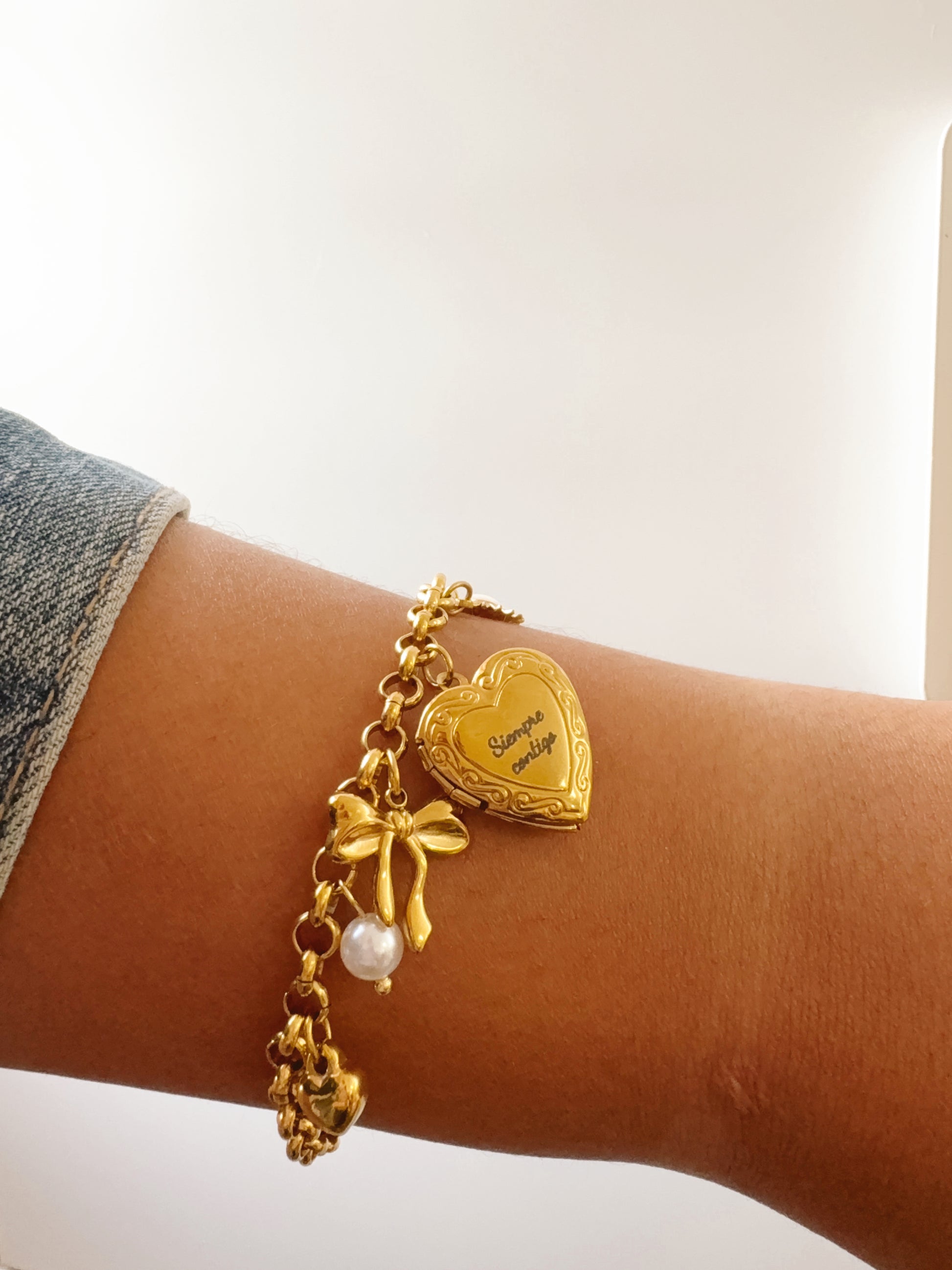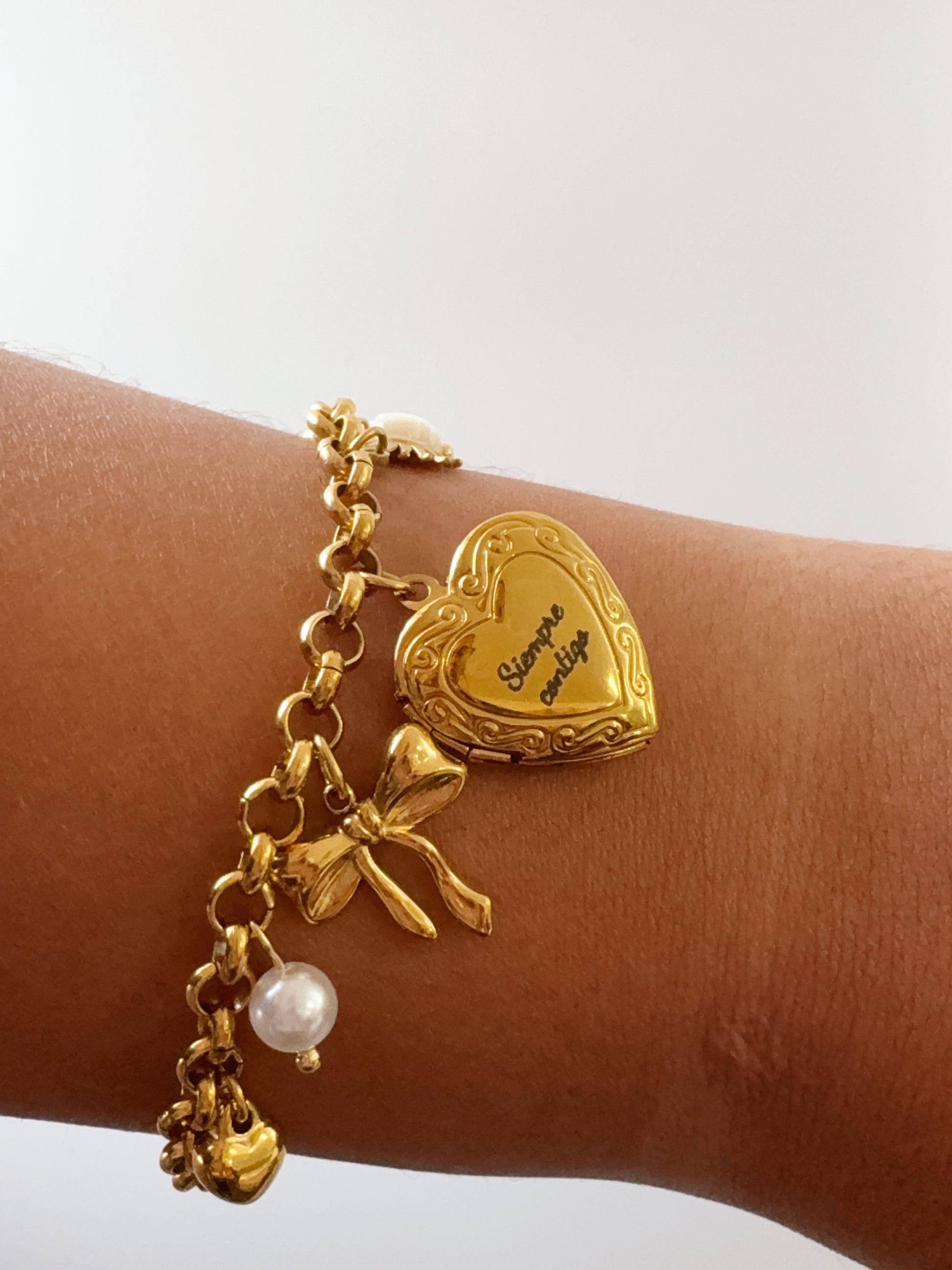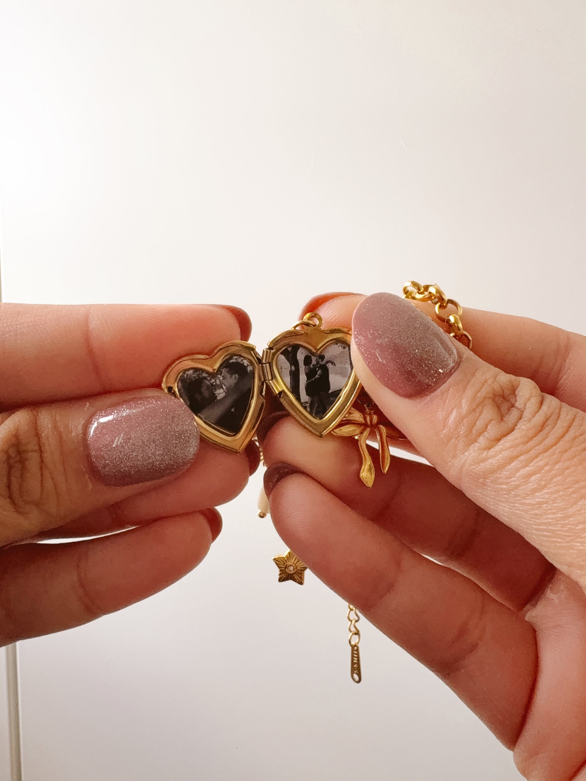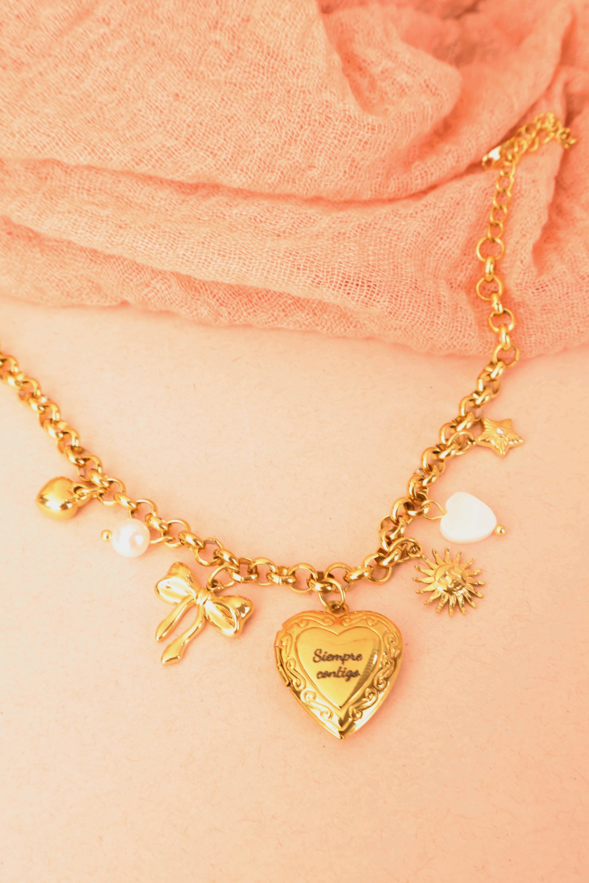 Desde el corazón relicario con fotos hasta los charms delicados que simbolizan tu transformación, tu dulzura, tu luz y tu amor propio… esta pieza fue creada para acompañarte en tu proceso, y recordarte que aún con cicatrices, estás completa.